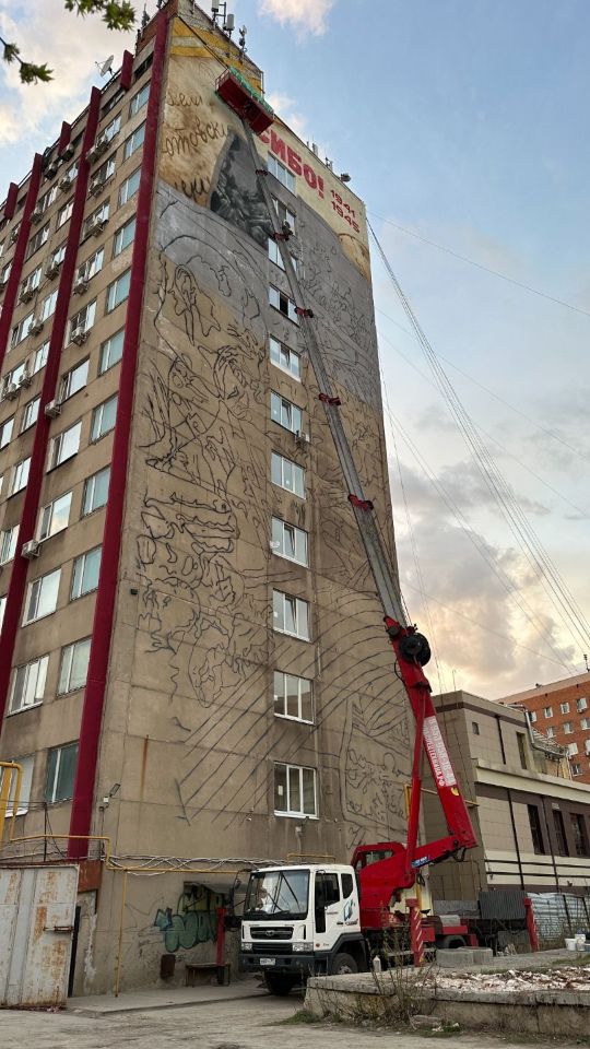 Выполнение различных высотных работ с помощью автовышки. Электромонтаж, демонтаж конструкций, оформление фасадов граффити, монтаж витражей и другие
