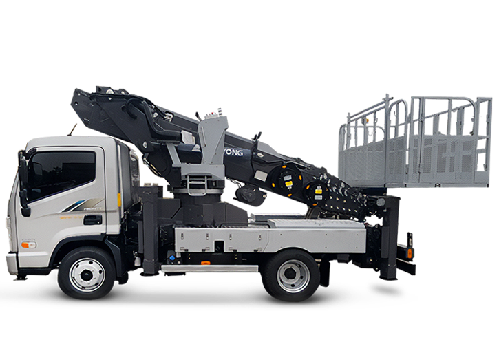 Телескопическая автовышка Hansin 27 метра на шасси Hyundai Mighty с поворотной и раскладной люлькой г/п 400 кг.