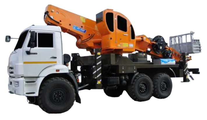 Телескопическая автовышка 54 метра на вездеходном шасси Камаз с поворотной и раскладной люлькой г/п 400 кг.