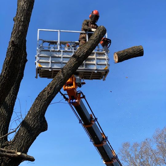 Удаление и кронирование аварийных деревьев любой сложности с помощью автовышек или промышленного альпиниста