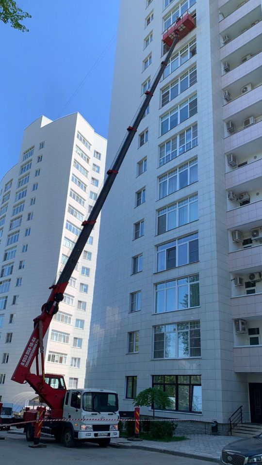 Мытьё окон и фасадов с помощью автовышки